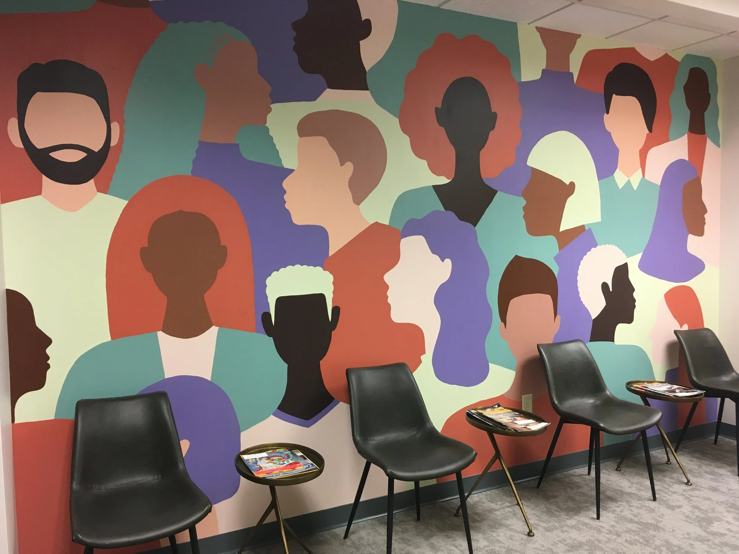 The Aliveness Project provides medical services and treatments as well as social services for people who are affected by HIV. The people in the mural are reflective of the 2022 study on the demographics of people newly affected by HIV.